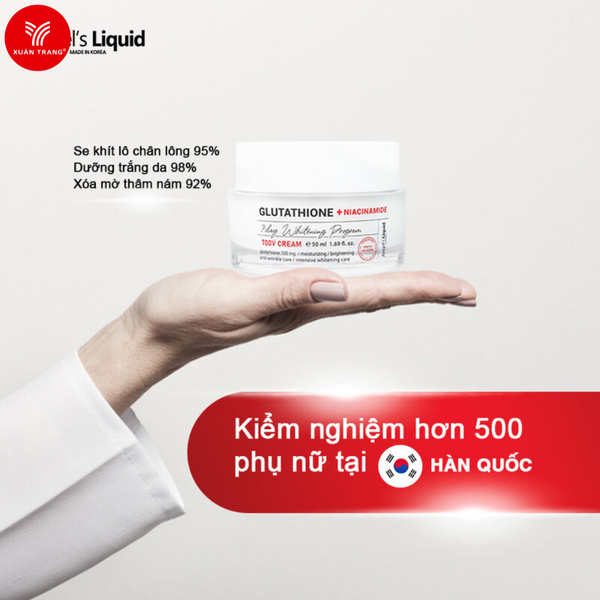 Chỉ với một lớp kem mỏng nhẹ cho mỗi lần sử dụng, Angel's Liquid Glutathione + Niacinamide V-Cream ngay lập tức thấm sâu và lan tỏa đến từng tế bào, 7 ngày sẽ tạo nên bước ngoặt làn da: Tăng độ sáng 12.4%; Giảm thâm nám 8.1%; Cải thiện nếp nhăn 15.4%... được kiểm nghiệm trên hơn 500 phụ nữ tại Hàn Quốc.