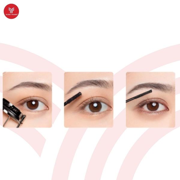 + Dùng đầu chuốt, chuốt kỹ theo chiều hướng lên của mi từ gốc đến ngọn. Chuốt theo chiều ngang để thoa lên và làm phồng mi dưới.