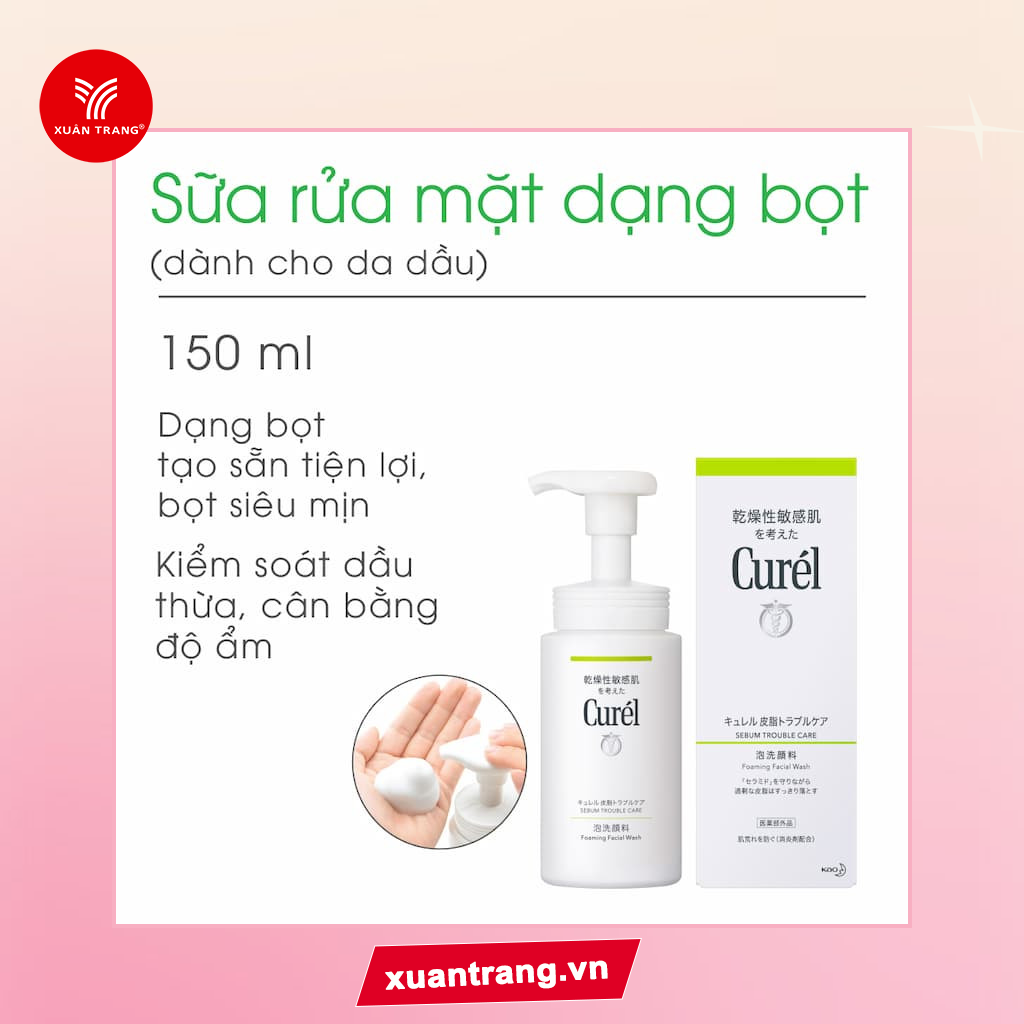 Sữa Rửa Mặt Dạng Bọt Curél Sebum Trouble Care Foaming Facial Wash Dành Cho Da Dầu 150ml