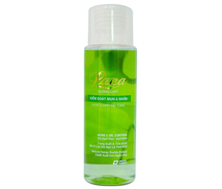 Lana Acne Clarifying Tonic với thành phần chính là kim ngân hoa nổi tiếng về khả năng khắc phục các vấn đề về mụn. Ngoài ra, sản phẩm còn chứa nhiều thành phần tốt cho làn da.