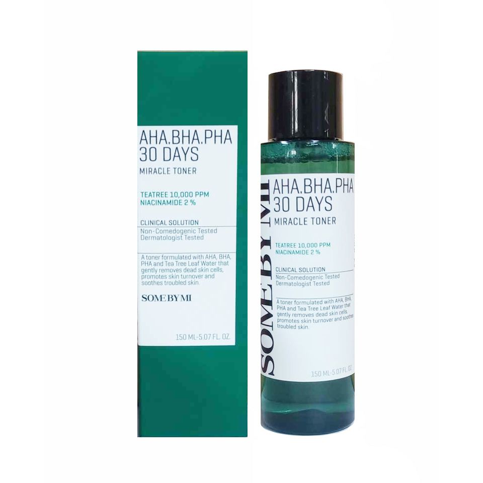 Nước hoa hồng Some By Mi AHA-BHA-PHA 30 Days Miracle Toner với chiết xuất từ AHA - BHA - PHA cùng nước lá Tràm trà và Niacinamide giúp cung cấp độ ẩm cho da, đồng thời ngăn ngừa mụn, mang lại làn da mịn màng.